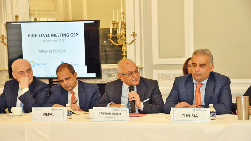 Ambassador Sridhar Khatri participated in the high-level meeting of the Alliance of Generalized Systems of Preference (GSP) Countries held on February 16th at the Embassy of Argentina in Washington, D.C. The Ambassadors and representatives of 26 countries discussed their request to the US Congress for reauthorization of the GSP preferential market access facilities offered to the Least Developed and Developing Countries. They agreed that joint letters signed by the ambassadors and representatives will be submitted to the Chairman and Ranking Members of the Senate Finance Committee and Senate Foreign Relations Committee, and House Ways and Means Committee and House Foreign Affairs Committee of the US Congress for the renewal of the GSP program. The program expired on December 31, 2020.