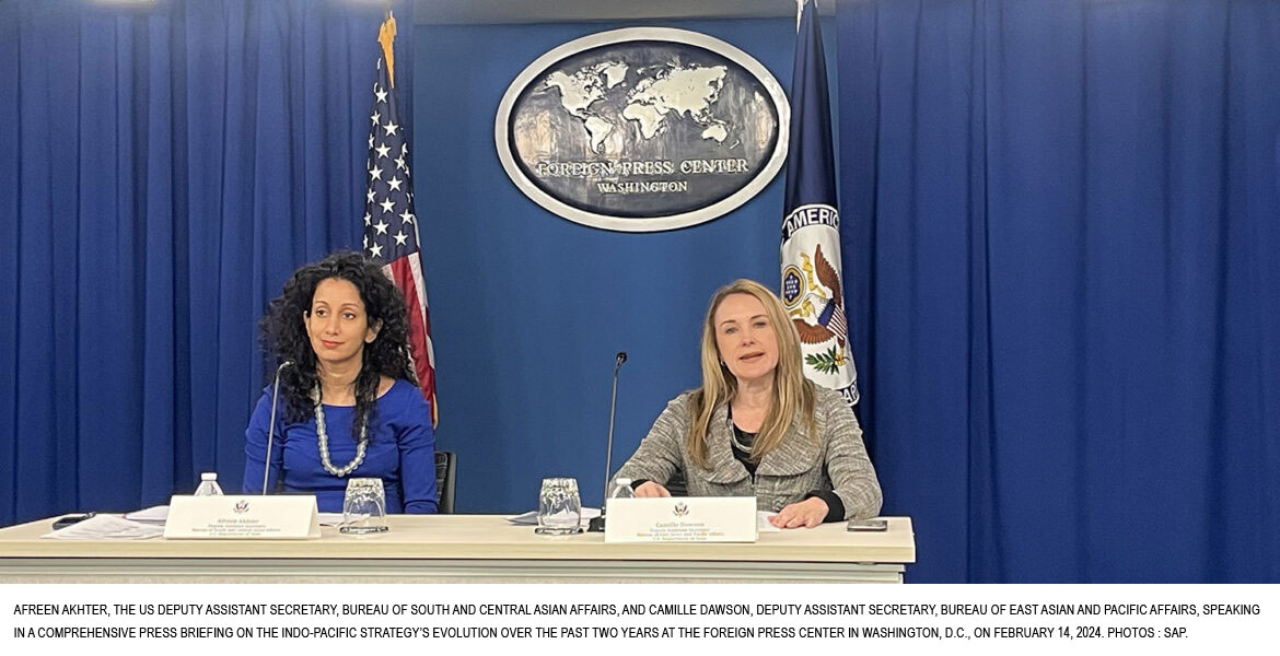 In a comprehensive press briefing addressing the Indo-Pacific Strategy’s evolution over the past two years, Afreen Akhter, the US Deputy Assistant Secretary in the Bureau of South and Central Asian Affairs, engaged with inquiries from this correspondent of the South Asia Perspectives (SAP) regarding the alignment of the Indo-Pacific Strategy with the dynamic landscape of Bangladesh.